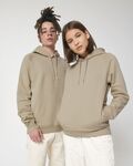 Raglan sleeve. Double-layered hood in self-fabric. Round drawcords in matching body colour with metal tipping. Metal eyelets. Inside herringbone back neck tape. Self-fabric half-moon at back neck. Slanted side seams with pockets. 1x1 rib at sleeve hem and bottom hem. Flatlock top-stitch on all seams. Vegan certified. Fairwear Foundation certified. Oeko-Tex certified.