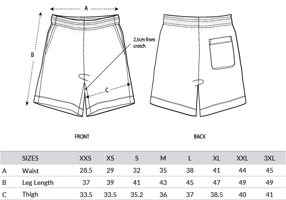 Unisex lightweight shorts. Self-fabric elastic waistband. Hidden flat drawcords on inside waistband. Pockets at front. Patch pocket at back. Bottom hem with narrow double-needle topstitch. Certified GOTS, Vegan, Fairwear, OEKO-TEX® Organic.